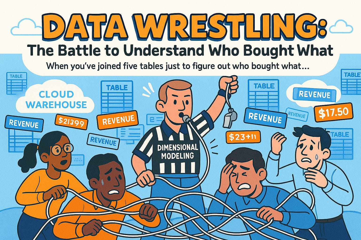 “If you’ve ever joined five tables just to figure out who bought what, welcome to the world of data wrestling , where dimensional modeling is the referee that stops the chaos and declares a clear winner!”